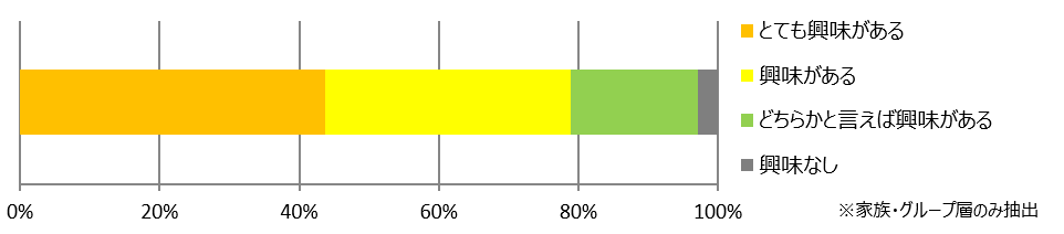 ホームアウェイが世界7カ国の約1,000人に実施した調査結果では、ホームアウェイのメインユーザーである家族・グループ層の約90%以上が、古民家宿泊に興味を持っていることがわかりました(図2)。訪日外国人は、日本の文化・歴史について関心をもっており、日本人の暮らしを体験することを望む傾向が見られます。家族・グループでの長期滞在を好む訪日外国人にとって、古民家滞在は魅力的な旅行目的になることが期待できます。