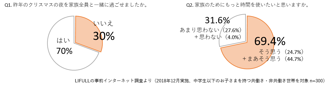 株式会社LIFULLは、このたび、家族との過ごし方について調査を行いました。その結果、およそ3家族に1家族がクリスマスを家族と一緒に過ごせていないことが分かりました。(Q1参照)これを受けて、LIFULLは、クリスマスの翌日12月26日にクリスマスを一緒に過ごせなかったご家族を招待した、クリスマスイベントを開催しました。
