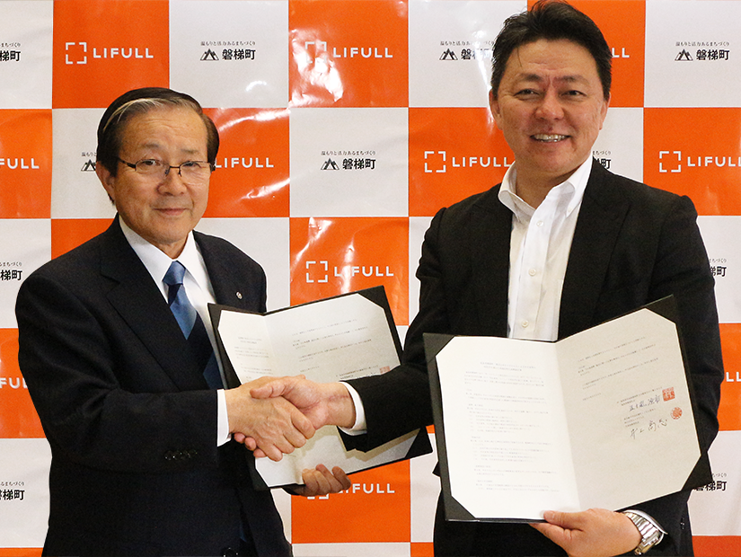 (写真左:磐梯町長 五十嵐 源市氏、写真右:LIFULL代表取締役社長 井上 高志)