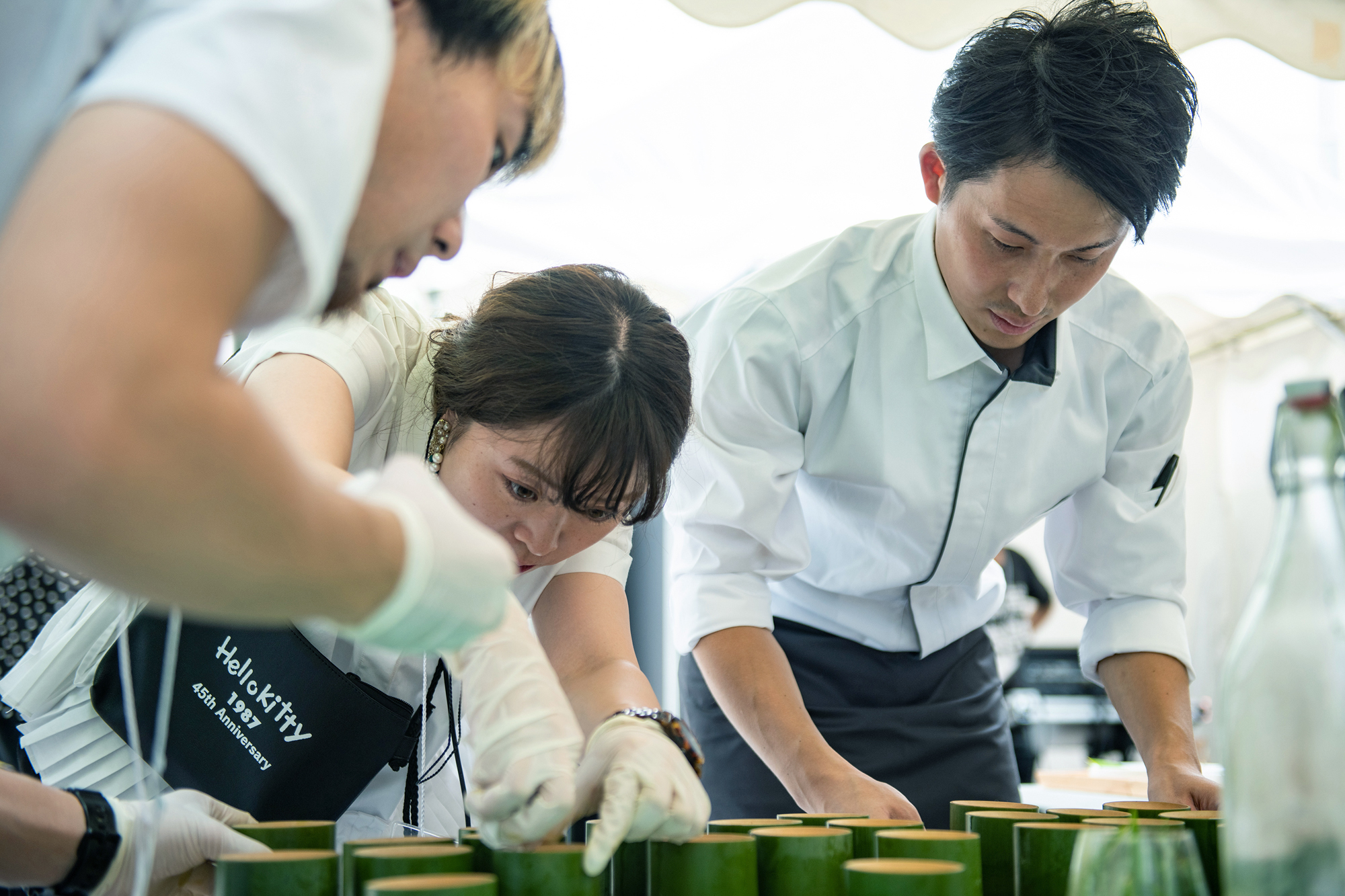 第二弾である今回は、全国各地で「放置竹林」が増加し社会問題となりつつある「竹」にフォーカス。パウダー状にした放置竹林の竹をすべての作品に使用し、海外からも注目を集める 新進気鋭のシェフ薬師神 陸氏と、和菓子作家の坂本紫穗氏による、合計8品の和菓子のフルコースを発表しました。
