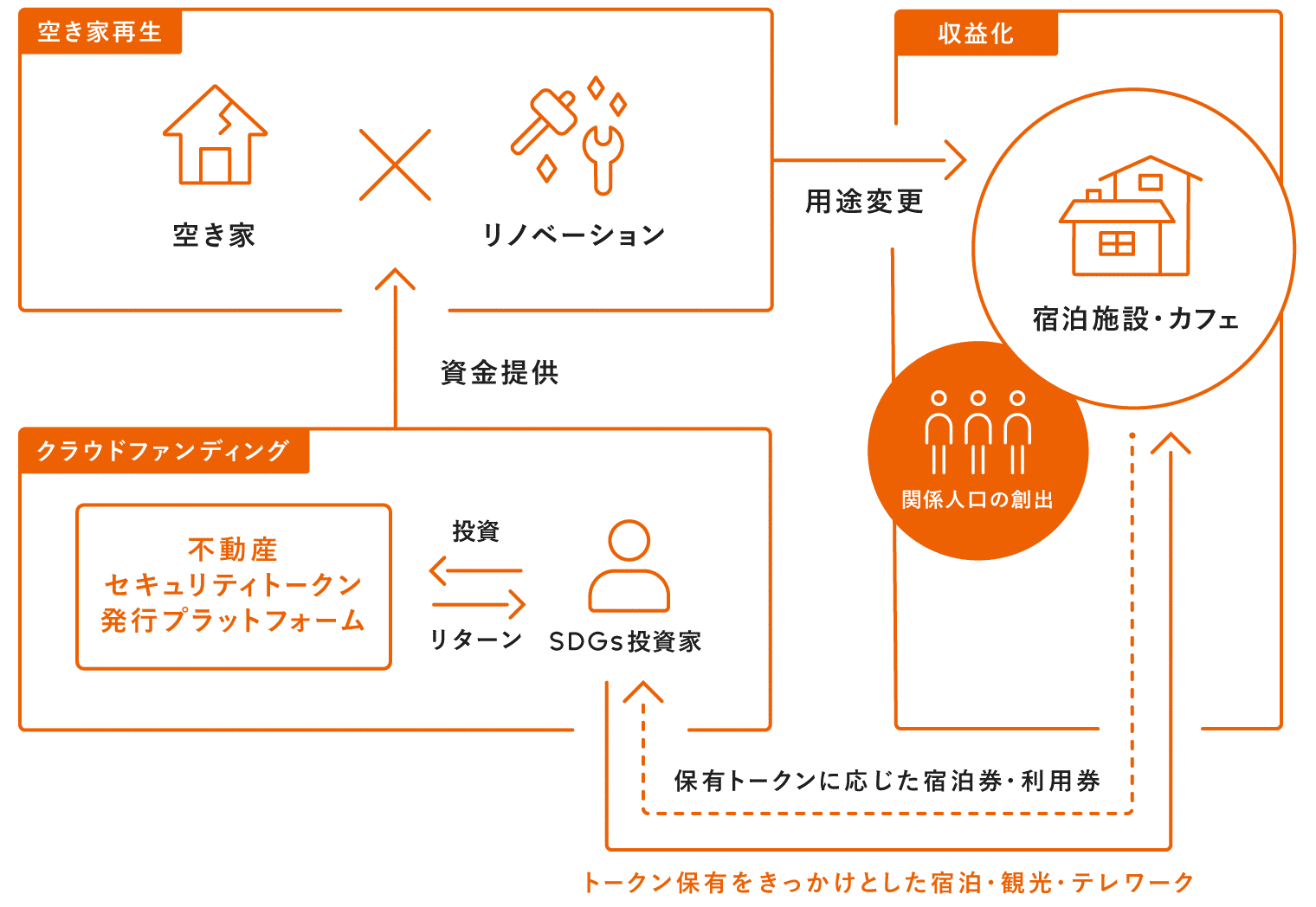 ふるさと納税など個人から地方部への「寄付」文化は身近になりつつありますが、「投資」に関しては具体的な対象商品も少なく、個人が地方創生に関する「SDGs投資」「ESG投資」を実施する選択肢は限られています。局所的な金銭的投資機会およびリターンだけではなく、不動産STOなどさまざまなテクノロジーによって組成される空き家等の小規模不動産ファンドへの投資を通じ、関係人口を増やし、投資効果が地方全体に永続的に波及することが求められています。