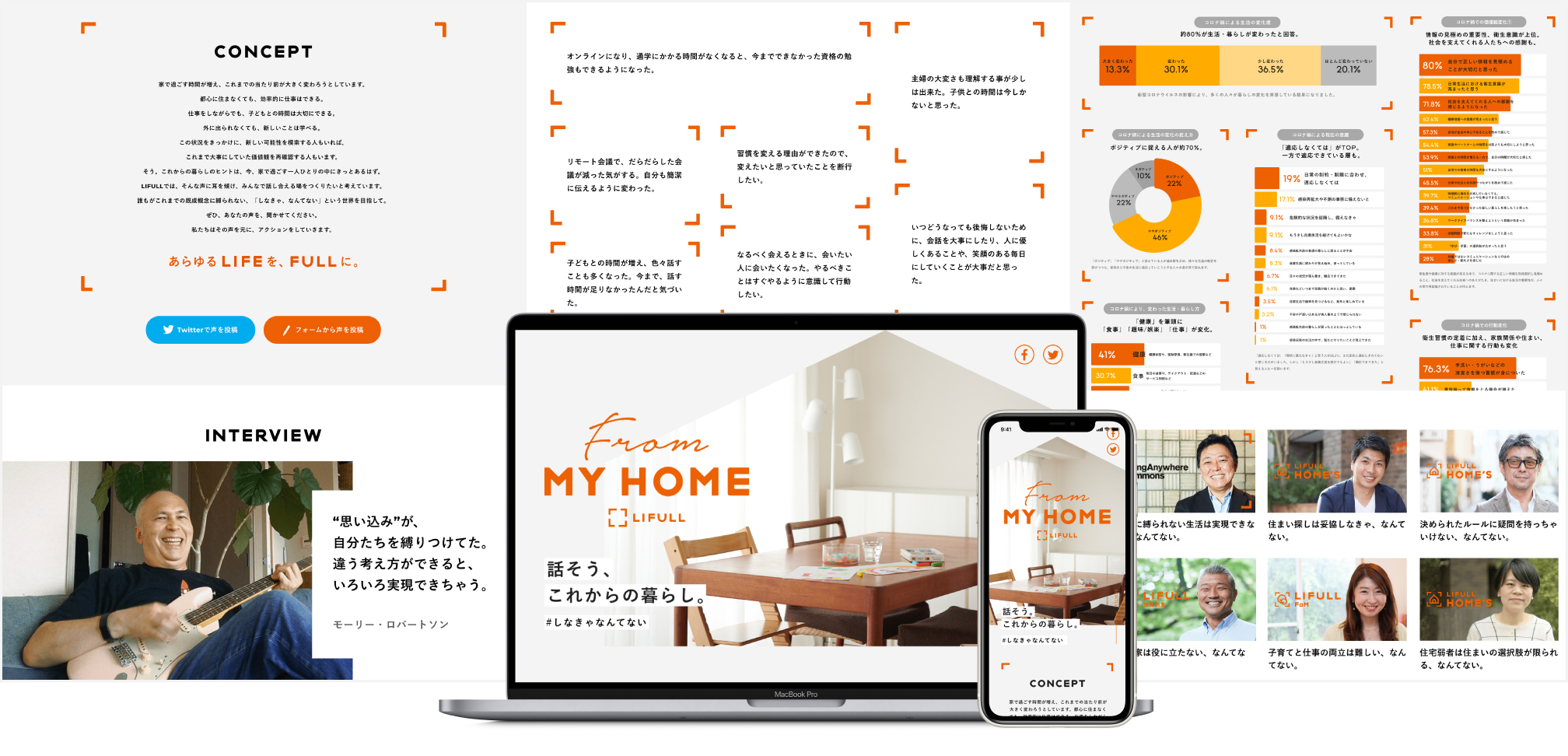 「話そう、これからの暮らし。-From MY HOME-」特設ページでは、公開中のインタビュー動画や全国2万人に聞いた「新しい暮らしへの兆し調査」、SNSなどを通じて寄せられた「これからの暮らし」に関する皆さまの声を抜粋し掲載しています。このSTAY HOME期間がきっかけとなり気づいた新たな発見やこれからの暮らしを考えるためのヒントが詰まっています。ぜひご覧ください。