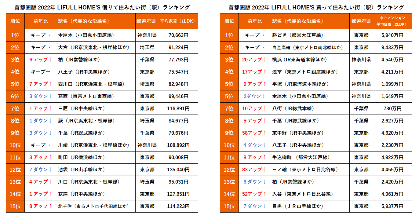 「2022年 LIFULL HOME'S 住みたい街ランキング」発表