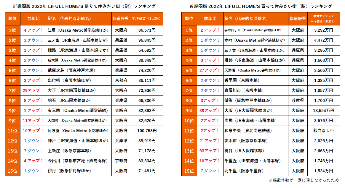 • 「2022年 LIFULL HOME'S 住みたい街ランキング」発表