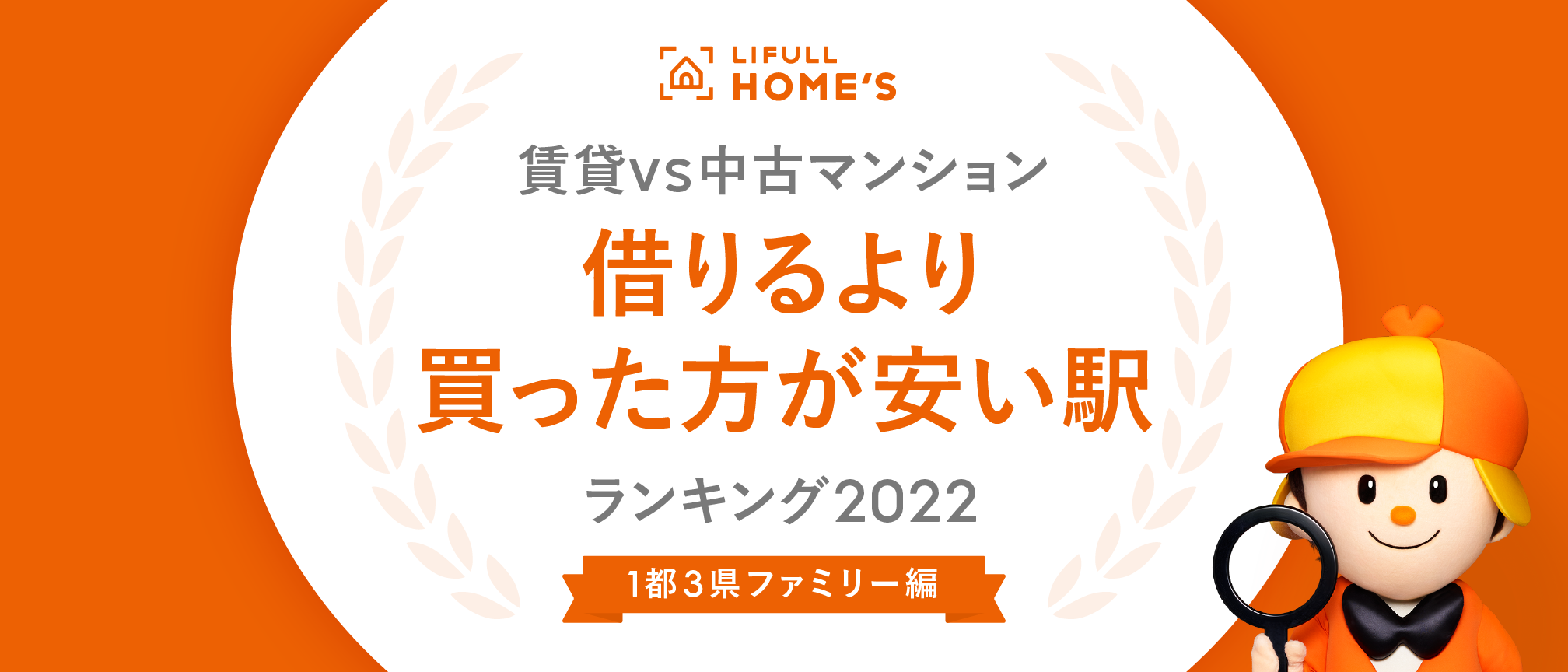 事業を通して社会課題解決に取り組む、株式会社LIFULL(ライフル)(本社:東京都千代田区、代表取締役社長:井上高志、東証プライム:2120、以下「LIFULL」)が運営する“住まいの本当と今”を伝える情報サイト「LIFULL HOME'S PRESS(ライフルホームズプレス)」は、2022年8月30日(火)、「賃貸 vs 中古マンション 借りるより買った方が安い駅ランキング2022 ~1都3県ファミリー編~」を発表しました。