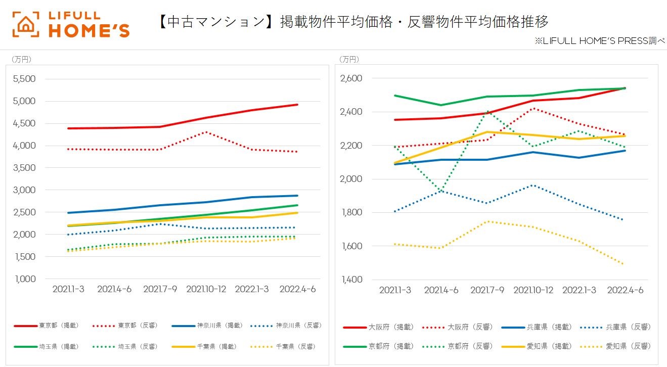 「LIFULL HOME'S マーケットレポート 2022年4~6月期」を公開~価格上昇が続く中古マンション・一戸建てだが、ユーザーの反響価格は追随せず~