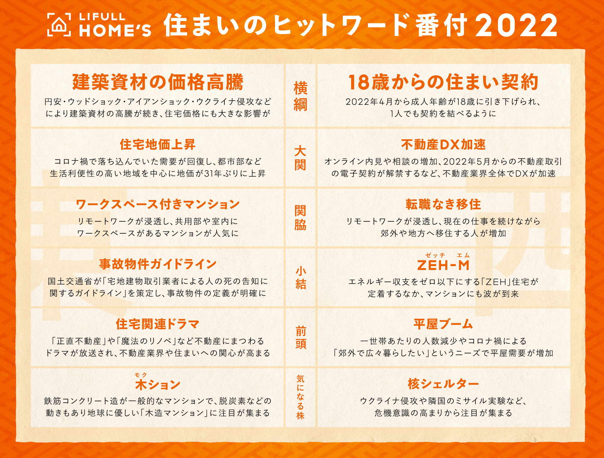 2022年、住まいのトレンドを振り返る 「LIFULL HOME'S 住まいのヒットワード番付 2022」を初めて発表
