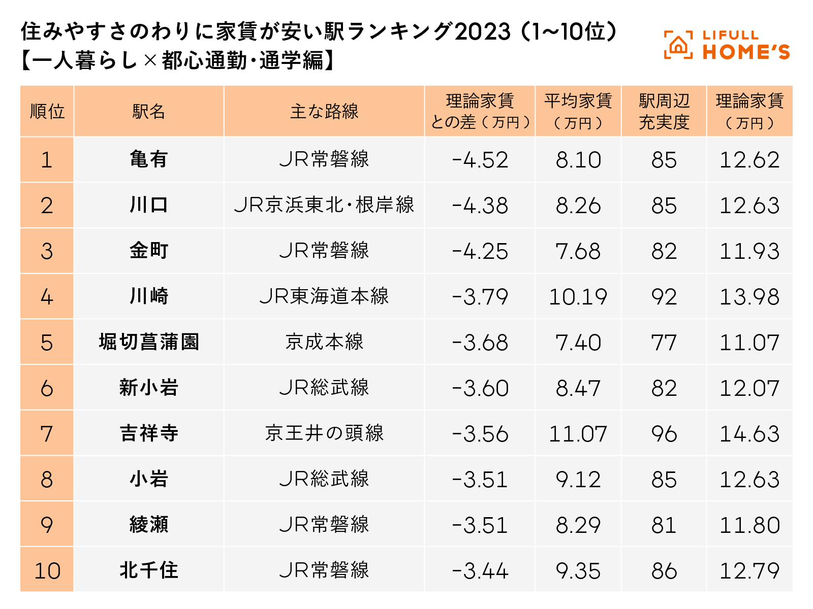 初めての一人暮らし!「近い・安い・住みやすい」駅はどこ? 【一人暮らし×都心通勤・通学編】住みやすさのわりに家賃が安い駅ランキング2023 LIFULL HOME'S PRESSが発表