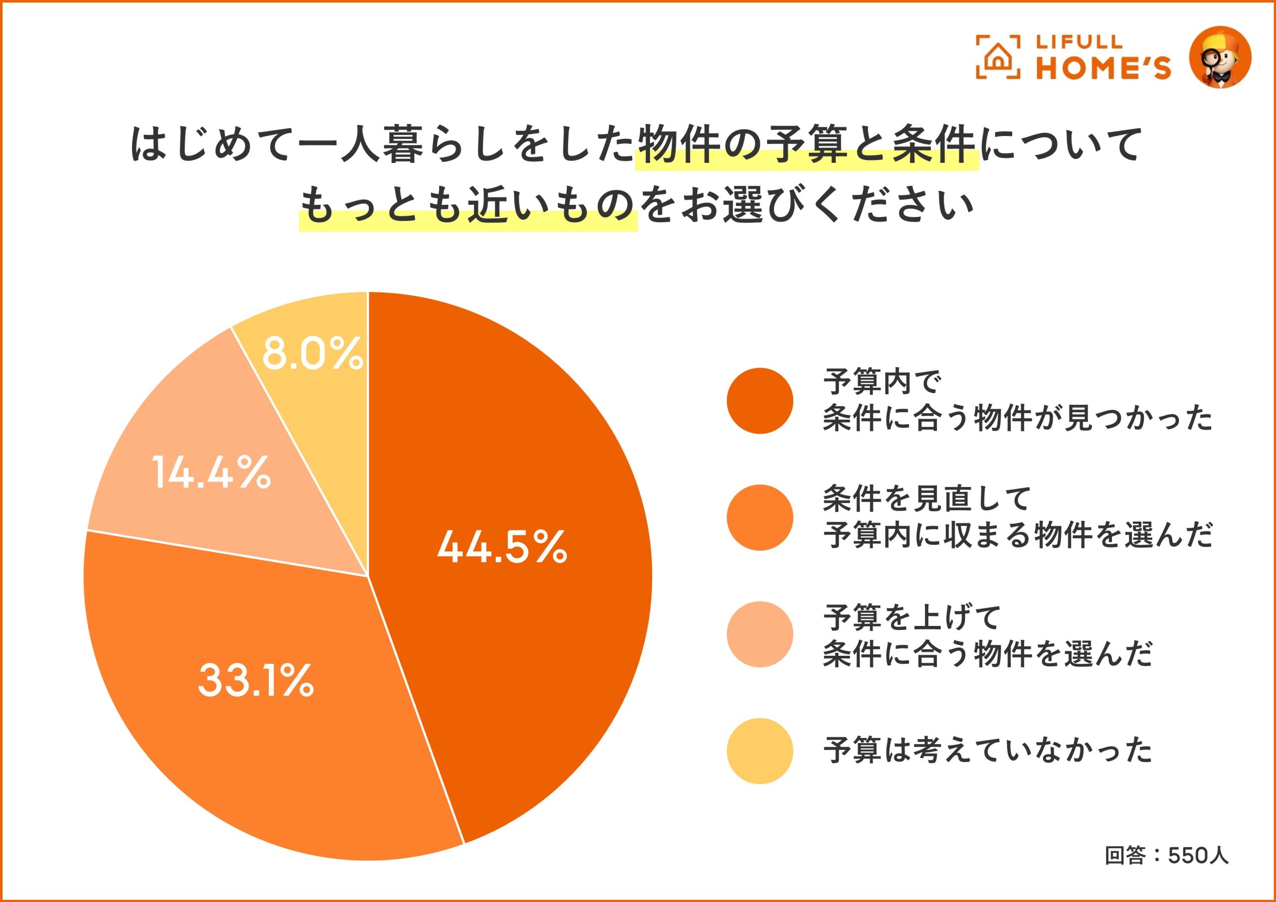 事業を通して社会課題解決に取り組む、株式会社LIFULL(ライフル)(本社:東京都千代田区、代表取締役社長:井上高志、東証プライム:2120、以下「LIFULL」)が運営する不動産・住宅情報サービス「LIFULL HOME'S」は、物件探しのときに希望する「理想」の条件と、実際に借りる際に選択した「現実」の条件などについて、3年以内にはじめて一人暮らしをした550人に調査を実施しました。