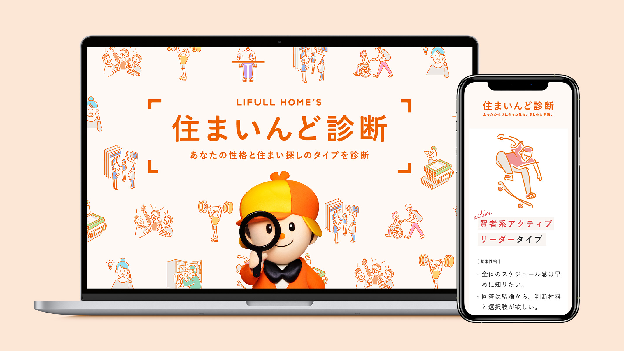 「LIFULL HOME'S 住まいんど診断」は、日本人4,000万人超の統計より開発された「ディグラム診断」をもとに、日本最大級の不動産情報サイト「LIFULL HOME'S」が収集した様々なデータを掛け合わせ、「信頼のおける、住まい探しのパートナーと出会う仕組みをつくる」ために開発された最新の不動産テクノロジーです。