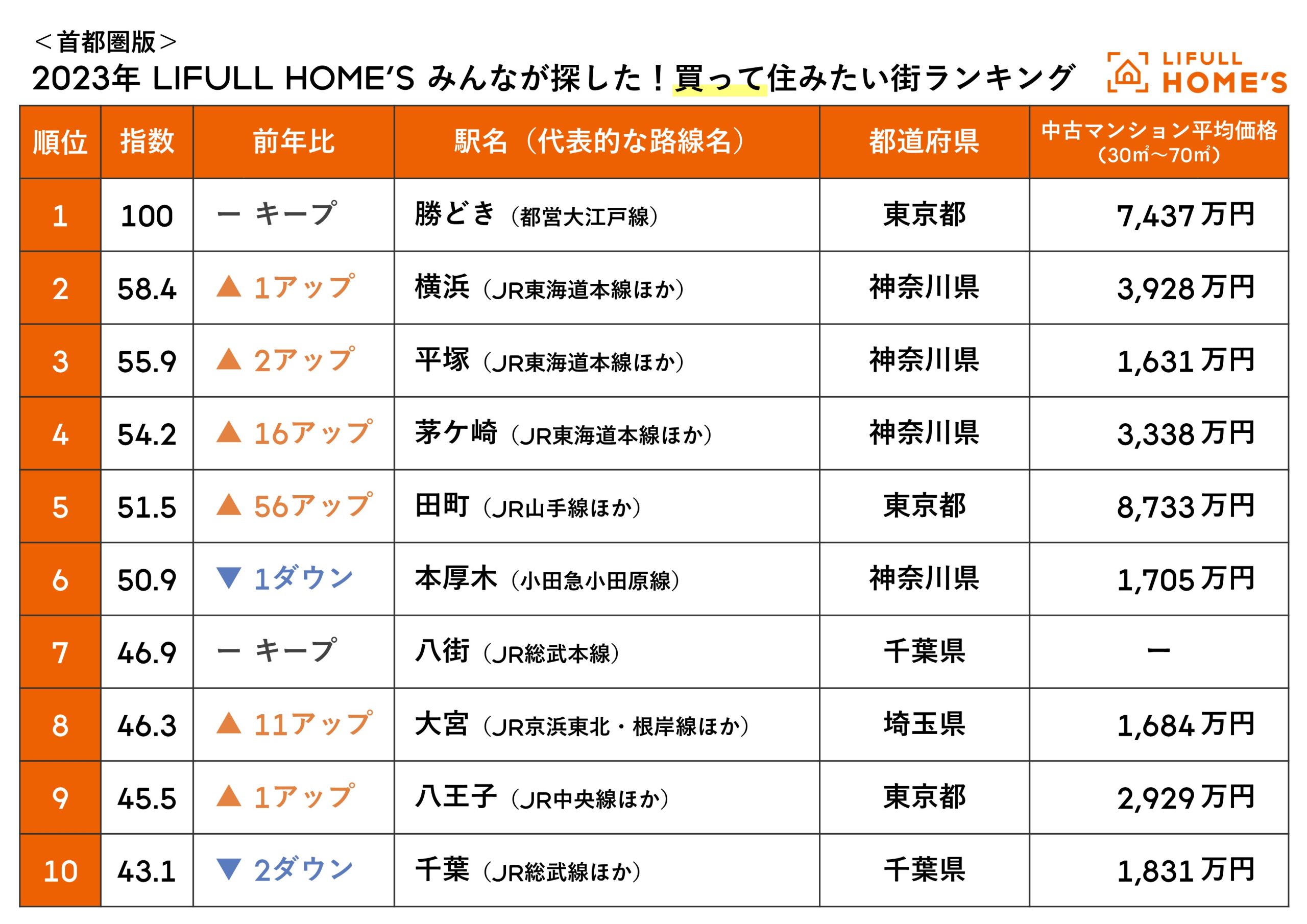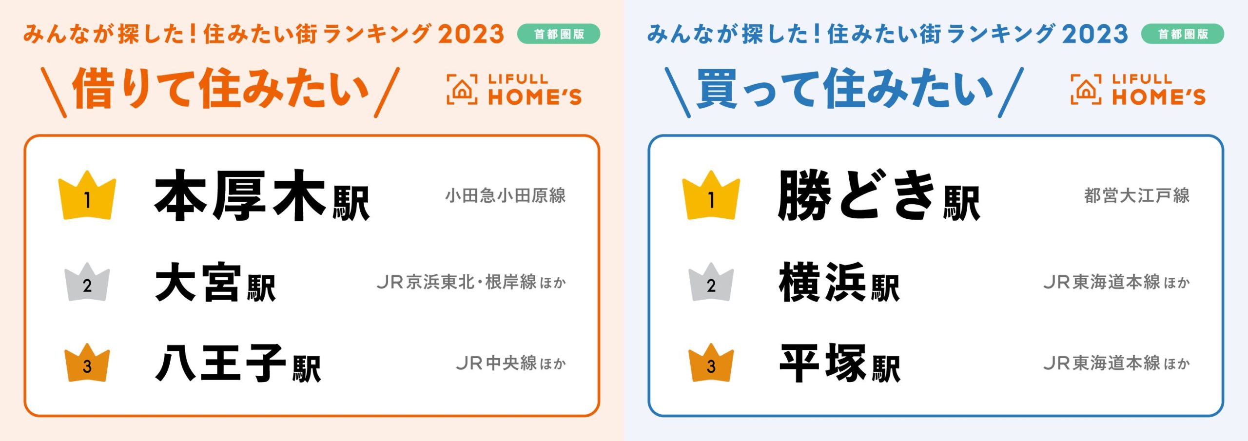 <首都圏版> 2023年 LIFULL HOME'S みんなが探した!住みたい街ランキング
