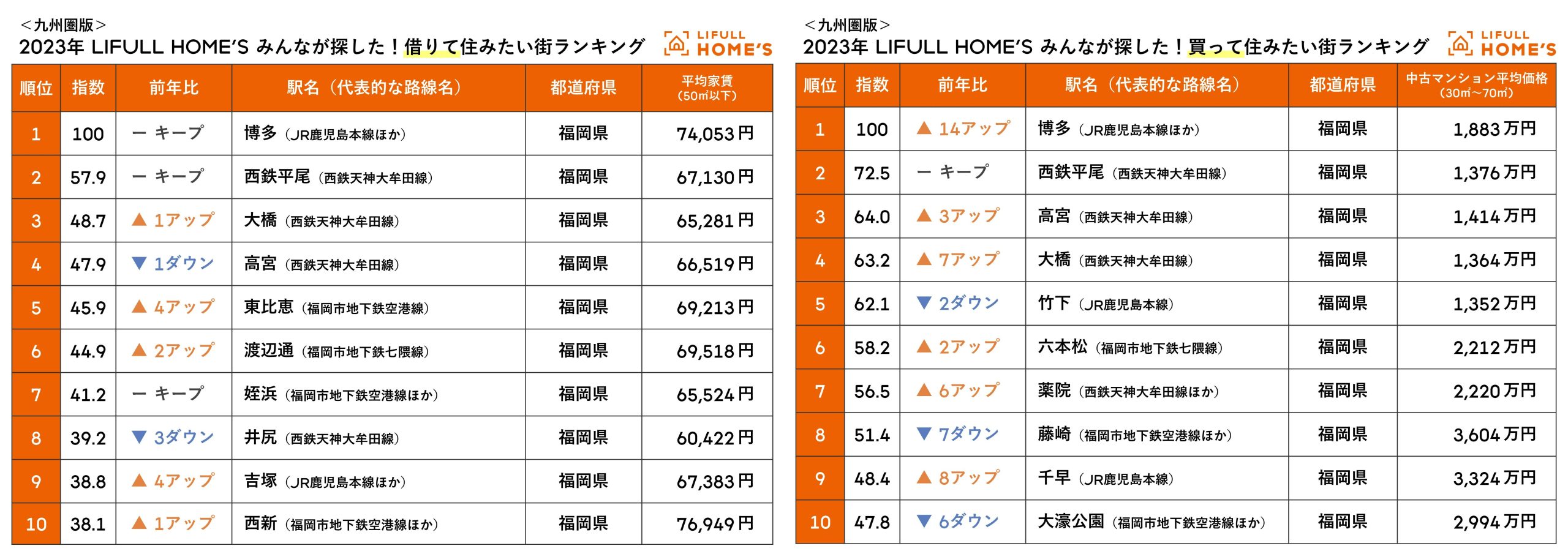 <九州圏版> 2023年 LIFULL HOME'S みんなが探した!住みたい街ランキング