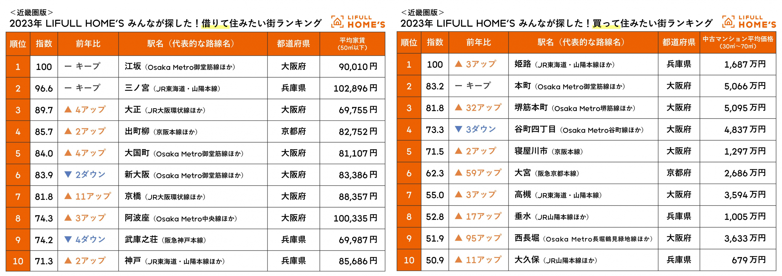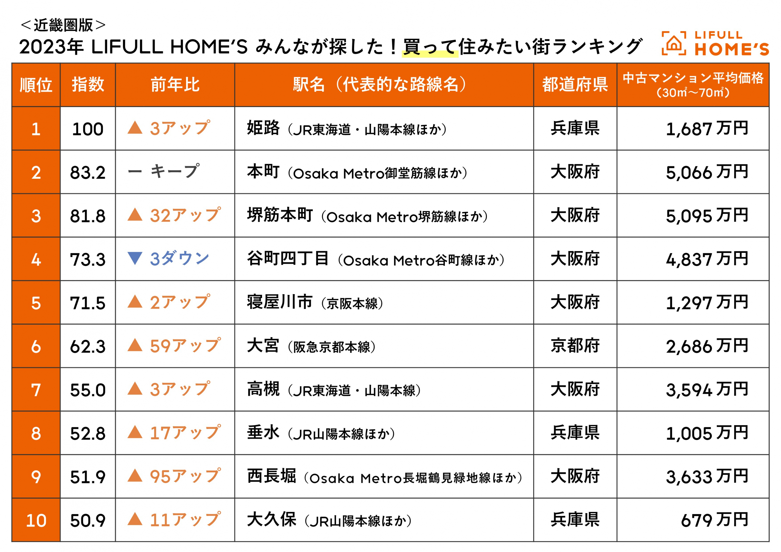 <近畿圏版>2023年 LIFULL HOME'S みんなが探した!住みたい街ランキング