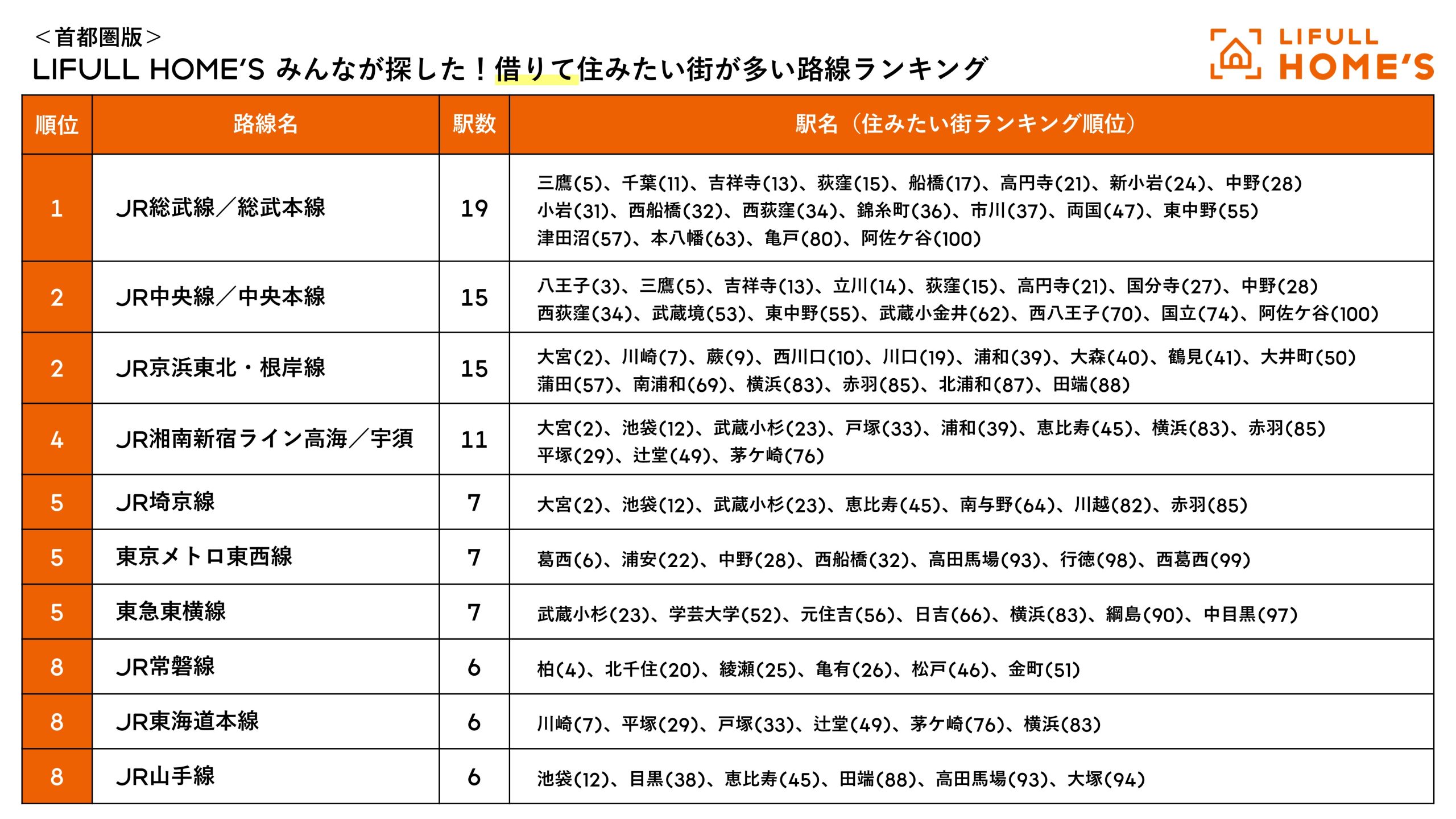 <首都圏版> LIFULL HOME'S みんなが探した!住みたい街が多い「路線」ランキングを初めて発表