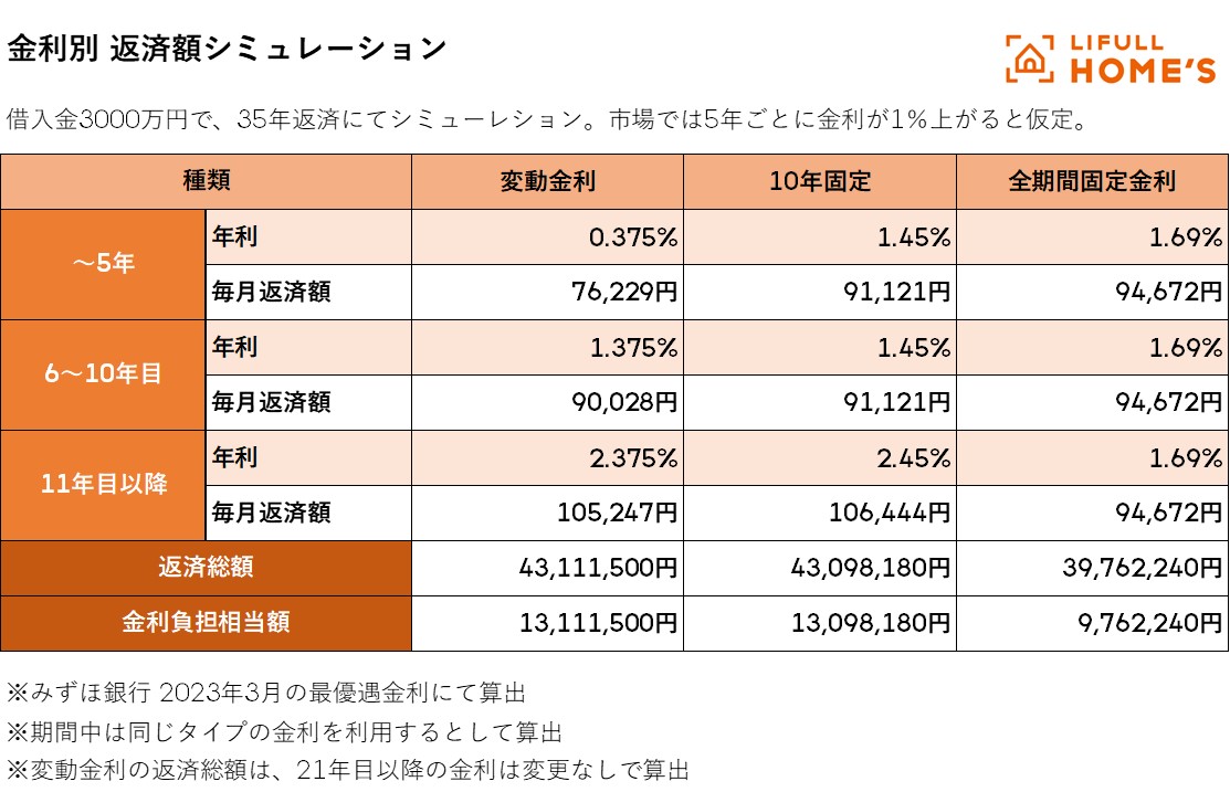 【LIFULL HOME'S総研 中山の考察】 現状、住宅ローン金利の先高観が強いのは固定金利ですが、これ以上金利が上昇すると返済が厳しくなる、もしくは買えなくなると不安に思うユーザーも多いので、多少金利水準が高くても、借り入れ後の金利に変動のない固定金利で安心して借り入れたいというユーザーが増えたものと考えられます。 現状の変動金利は平均0.4%台で安定推移していますが、過半数が上昇幅を「1.5%まで」しか許容できないという意向を示したことは、それだけ返済計画をギリギリで検討されているユーザーが多いことを示しています。住宅ローンは元本の金額も相応に大きく、返済期間も長期間に渡ることが多いので、その意味でも返済額に相応の余裕が必要になります。返済計画に余裕のできた時は繰り上げ返済するのも有効な手段です。 |