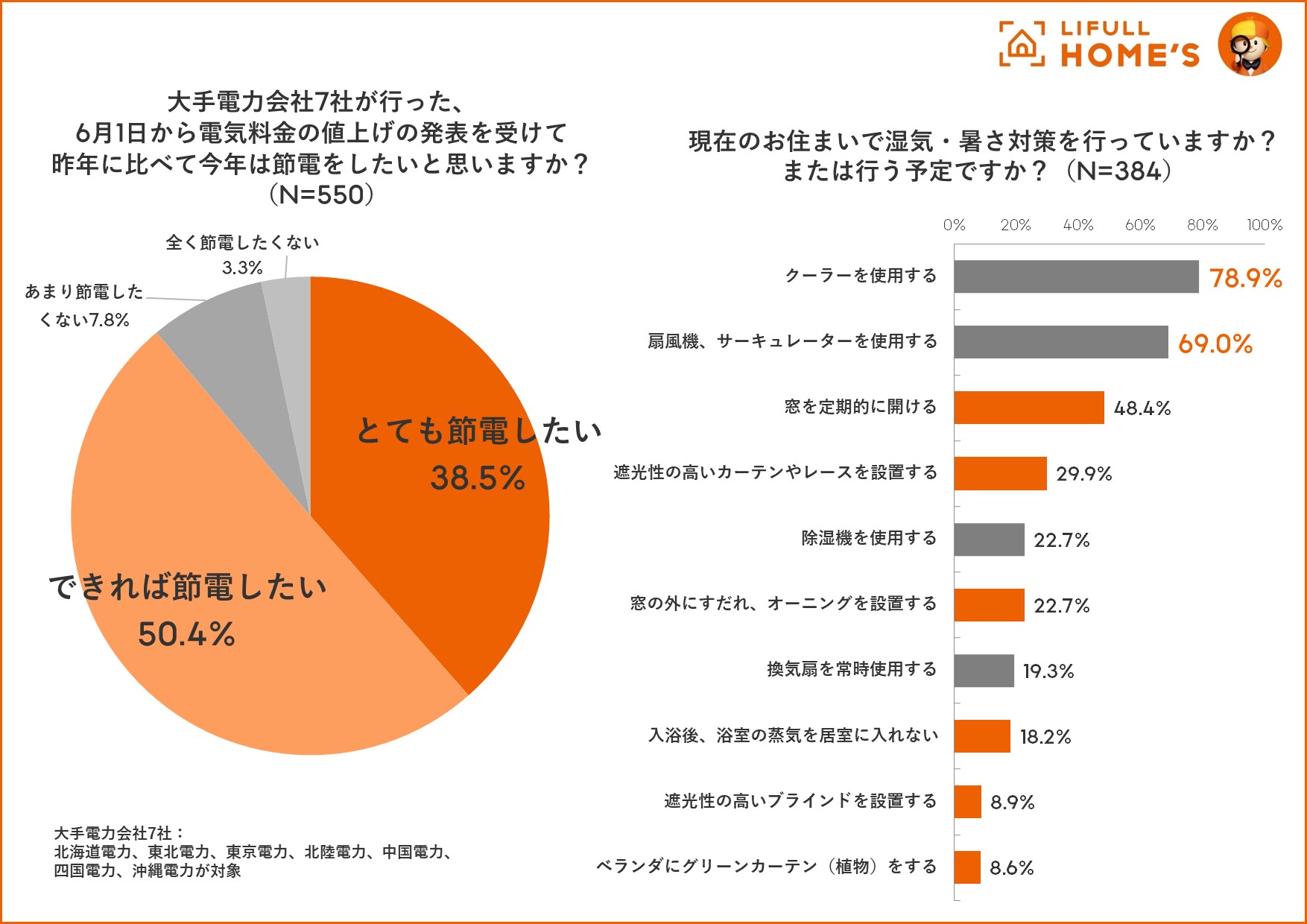 事業を通して社会課題解決に取り組む、株式会社LIFULL(ライフル)(本社:東京都千代田区、代表取締役社長:井上高志、東証プライム:2120、以下「LIFULL」)が運営する不動産・住宅情報サービス「LIFULL HOME'S」は、大手電力会社7社の電気料金が値上げするなか、「夏の湿気・暑さ、節電に対する意識調査」を実施しました。その結果とともに、「LIFULL HOME'S住まいの窓口」の担当者が住まい探しにおける暑さ・湿気、節電対策について指南します。