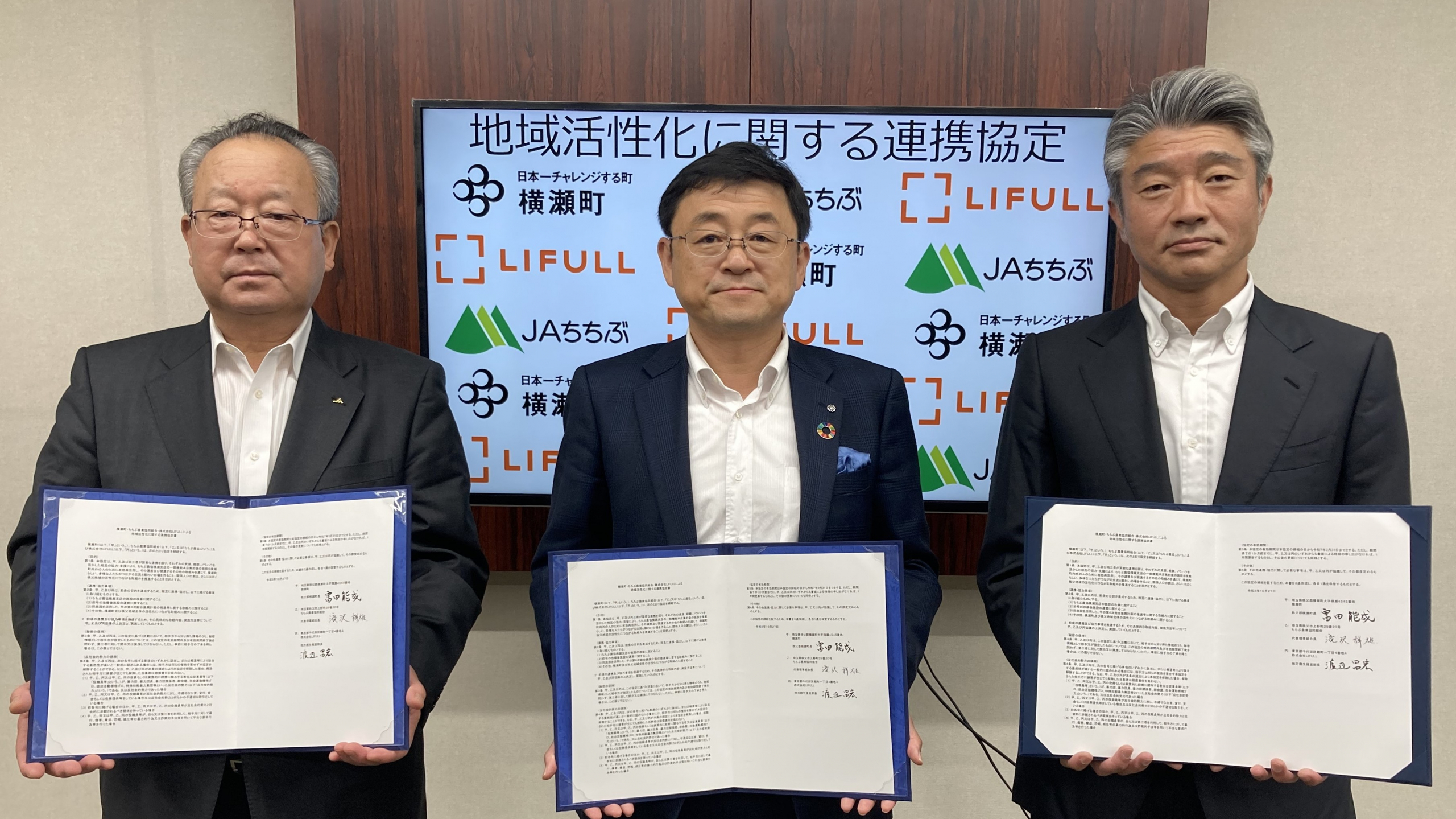 株式会社LIFULL(ライフル)(以下LIFULL、本社:東京都千代田区、代表取締役社長:井上高志、東証第一部:2120)は、埼玉県秩父郡横瀬町(町長:富田能成、以下「横瀬町」)、ちちぶ農業協同組合(代表理事組合長:滝沢祥雄、以下「JAちちぶ」)と2021年10月27日(水)に横瀬町内の遊休資産の利活用等による地域活性化に関する連携協定(以下「本協定」)を締結いたしました。本締結式は新型コロナウイルス感染症の感染対策を行いながら実施いたしました。