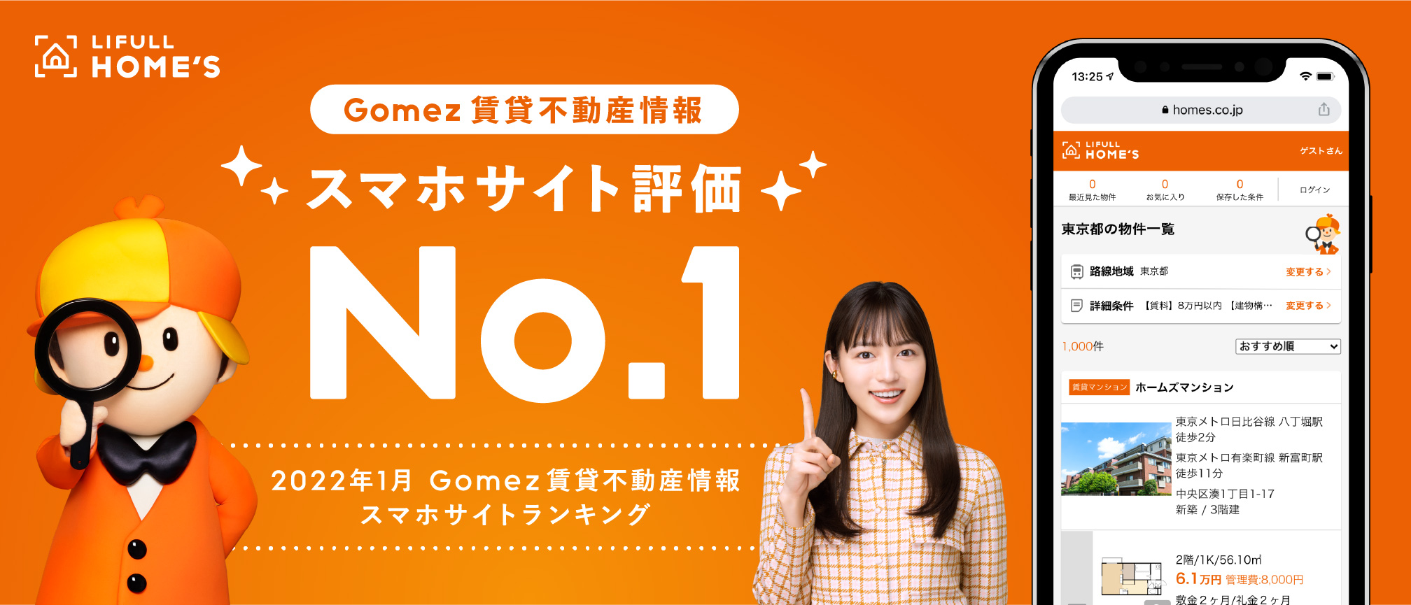 LIFULL HOME'Sが「Gomez賃貸不動産情報スマホサイトランキング」総合1位を獲得