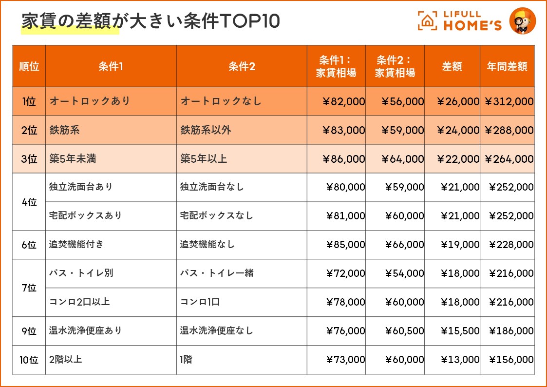 事業を通して社会課題解決に取り組む株式会社LIFULL(ライフル)(本社:東京都千代田区、代表取締役社長:井上高志、東証プライム:2120、以下「LIFULL」)が運営する不動産・住宅情報サービス「LIFULL HOME'S(ライフルホームズ)」は、「家賃の差額が大きい条件ランキング」を発表します。