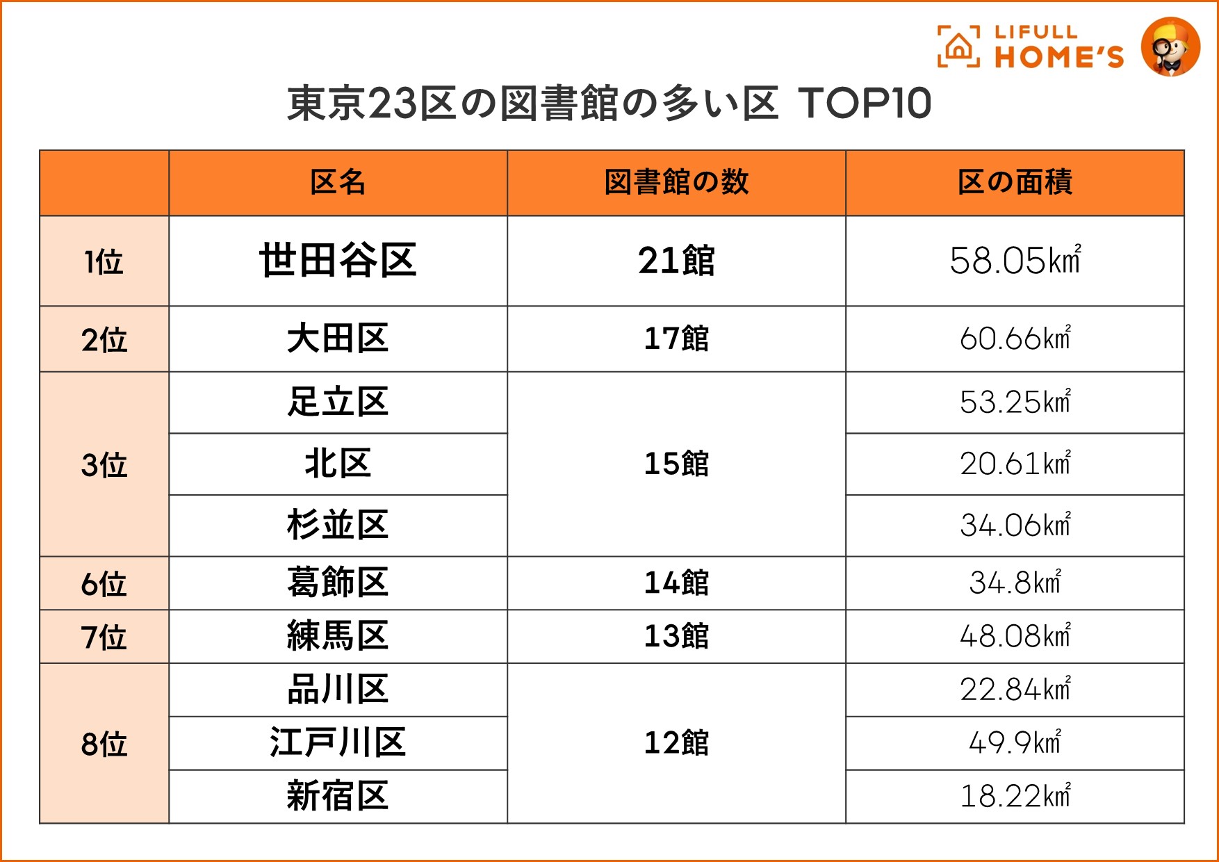 ■ 23区で図書館が最も多い区は21館の「世田谷区」!唯一の20館越え