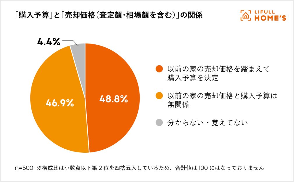 ■ 売却額を考慮せずに新居の予算を決める人が半数近くにのぼる
