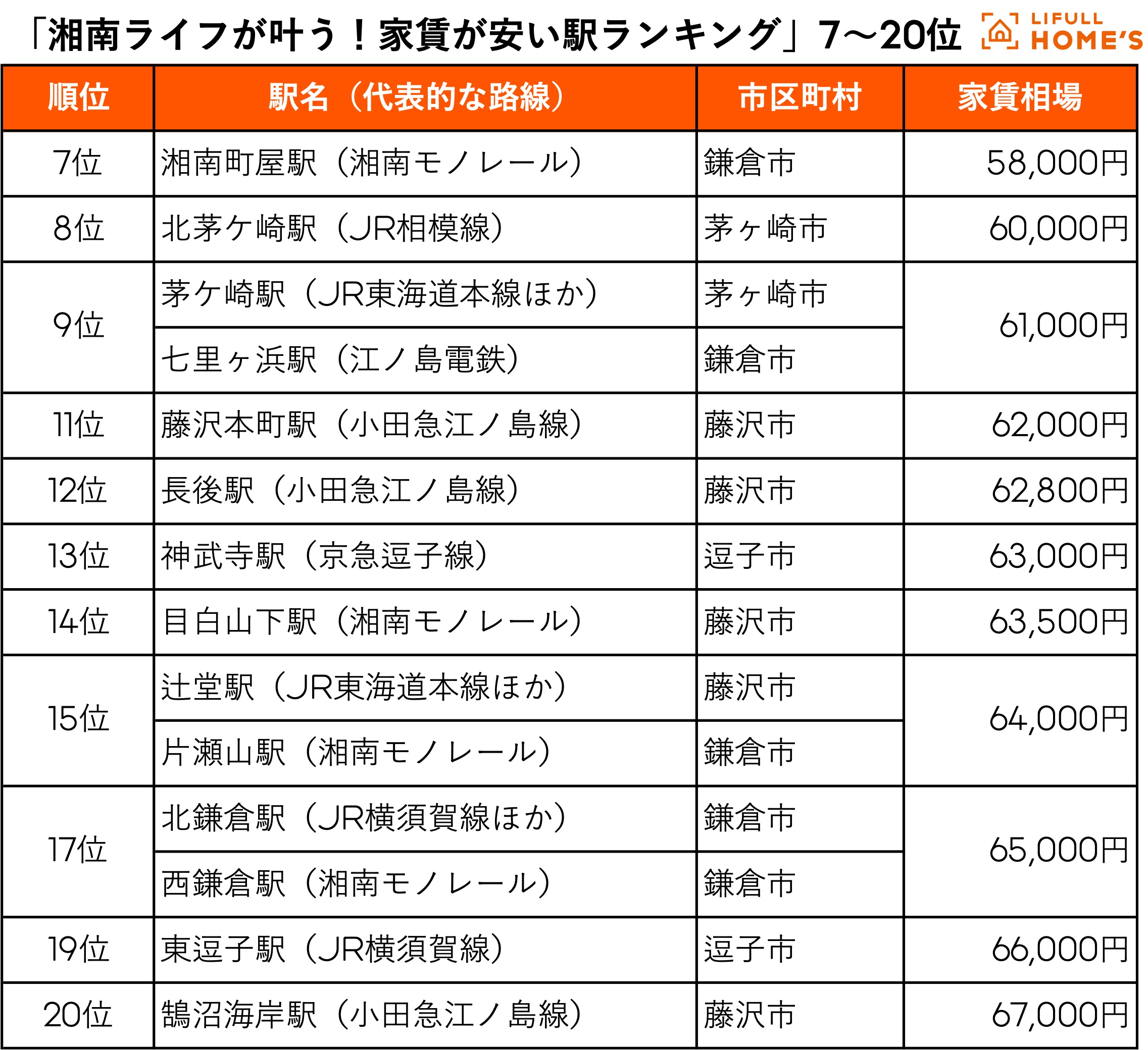「湘南ライフが叶う!家賃が安い駅ランキング」発表!