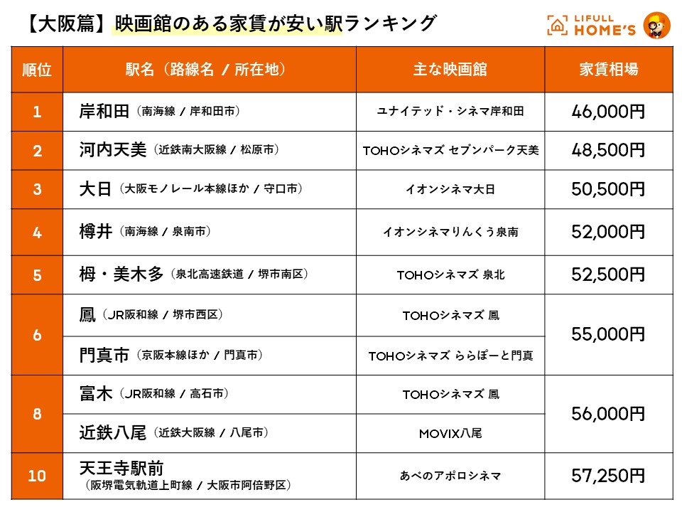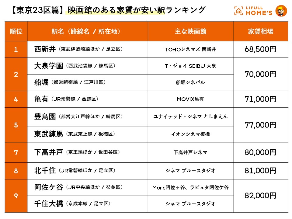 芸術の秋!LIFULL HOME'S発表「映画館のある家賃の安い駅」ランキング(東京23区/大阪篇)