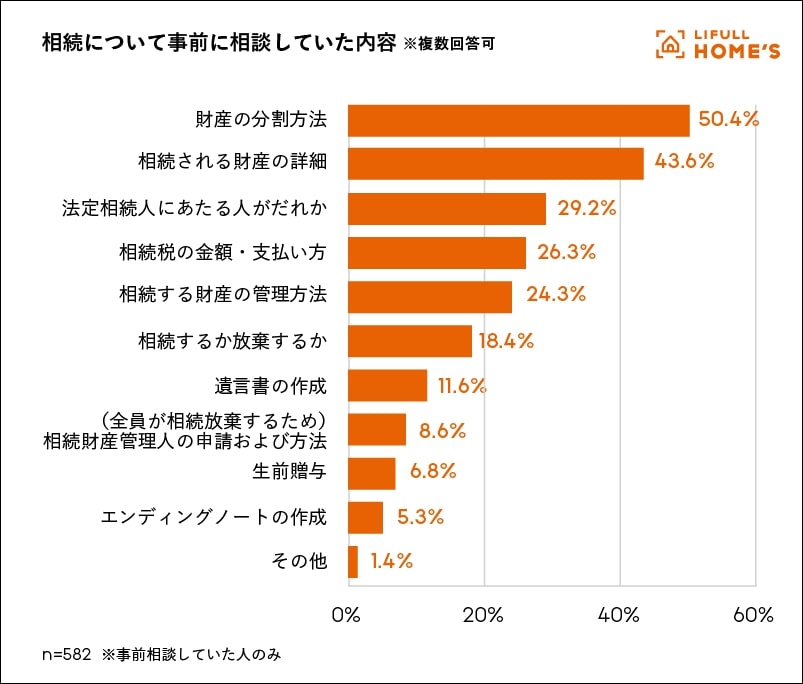 相続前に話し合ったのは約8割、内容は「財産の分割方法」が1位